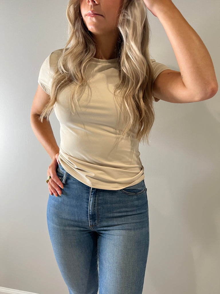 Discover a new level of comfort and style with our breathable tee shirts that offer a remarkable feel reminiscent of "Skims" material. These tees combine lightweight design with a touch of luxury, ensuring you stay chic and comfortable throughout your day.